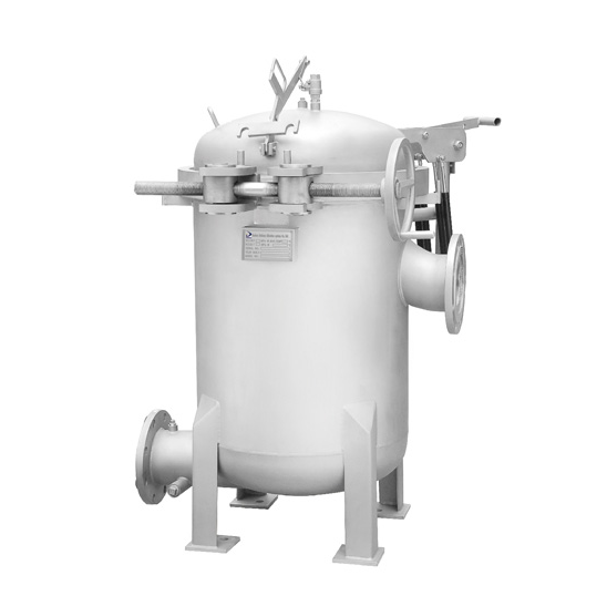袋式過濾器以采用壓力過濾的方式,設備罐體由筒體,筒蓋以及濾網和其它裝置組成。需要過濾的原理從一旁的入口進入濾袋,濾袋安裝在加強網中。需要不同等級的濾液可采用不同精度的濾袋,也就是說濾袋決定了過濾的效果,過濾之后水質流出濾袋,而雜質被攔截。使用濾袋過濾基本不會產生任何的物料消耗。通常過濾方法為側進側出或者側進底出。管道中的壓力會將過濾液體抽入或抽出罐體,在經過濾袋過濾之后,就可以達到固液分離的效果。